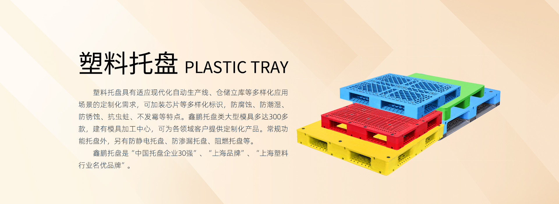 上海鑫鵬塑料創(chuàng)始于1987年,始終專注深根塑料產(chǎn)業(yè)鏈,業(yè)務(wù)板塊包括:塑料原料貿(mào)易、塑料制品研發(fā)制造(塑料托盤、塑料箱筐、卡板箱、環(huán)衛(wèi)桶等)。現(xiàn)全國(guó)有5個(gè)生產(chǎn)基地:上海2個(gè)、四川1個(gè)、江蘇2個(gè)。